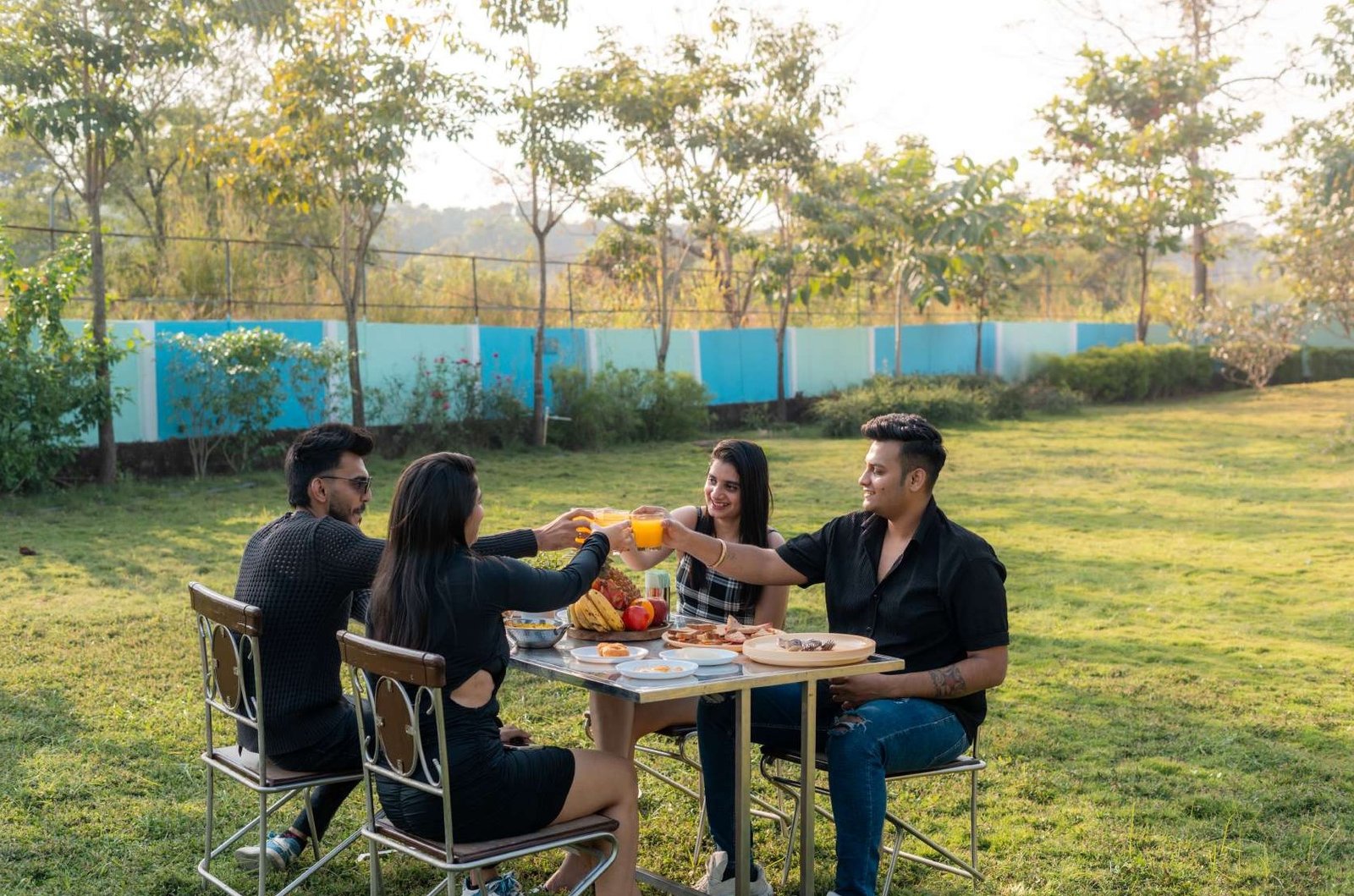 We offer a variety of fun-filled activities including multiple water slides, a large swimming pool, and a rain dance floor with music. For those looking for more adventure, we also provide access to a cricket field and other outdoor games.